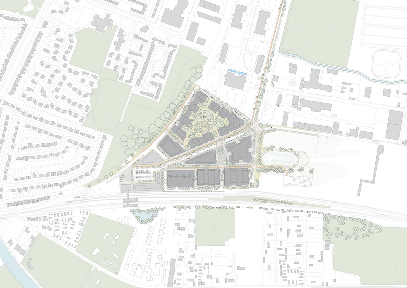 SIZE: 21 Ha. (425 homes; a transport mobility hub, new workplaces; lab buildings, shops, F&B; public spaces)