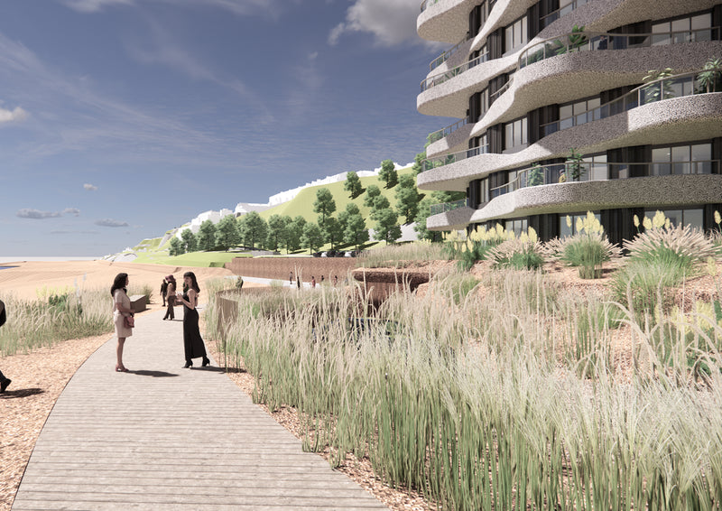 Folkestone Plot A is the second building within the Folkestone Harbour masterplan. This smallest block in the masterplan, forms the western endpoint between the Coastal Park, the Leas Lift Square and the crescents of the wider masterplan. The block contains 13 apartments, all with panoramic views of the English channel and the coastline.