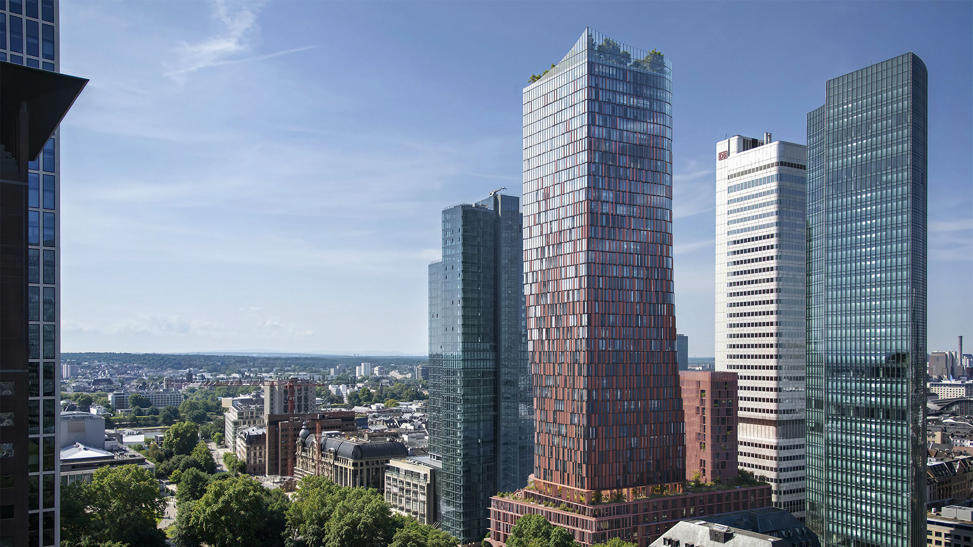 Located in the immediate vicinity of the Silver Tower, the project is conceived as both an extension of the existing ensemble and an independent addition to Frankfurt's skyline. The three structures – base, office tower, and residential tower – are spatially interwoven while simultaneously developing three distinct identities.