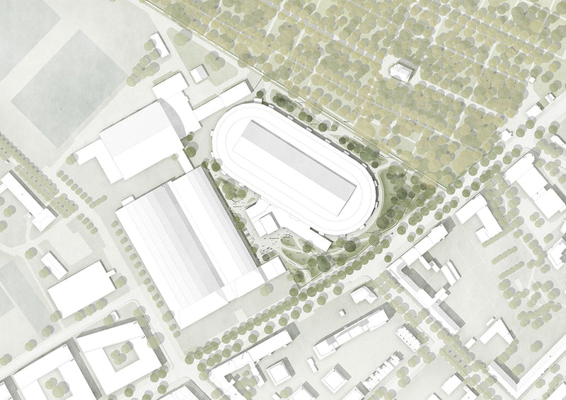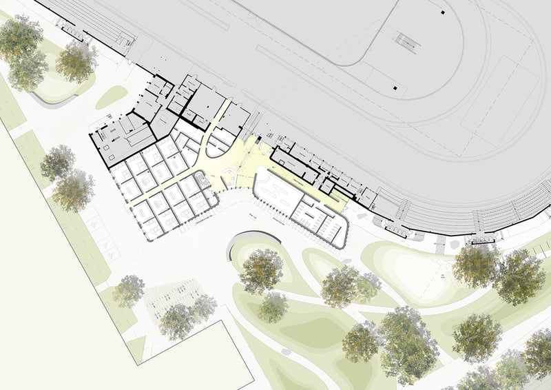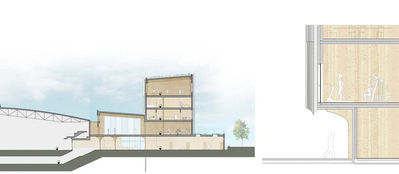 An extension of the existing skating hall to provide new facilities for professional athletes of the winter sports. An opportunity to redefine the exterior with greater presence and a new identity.