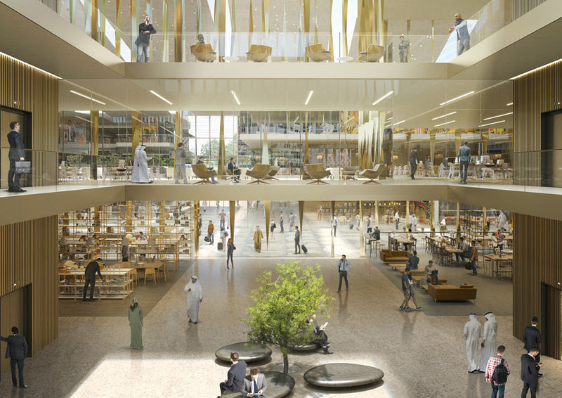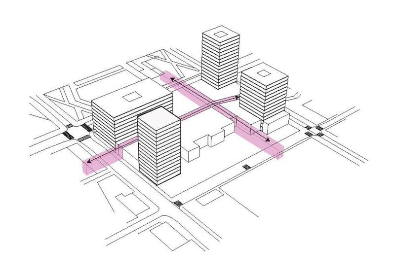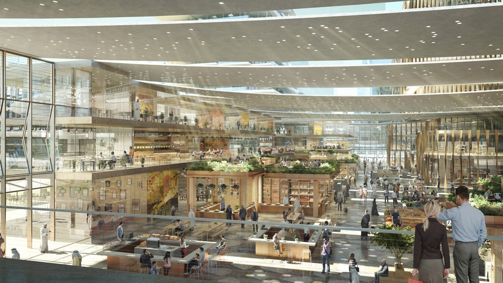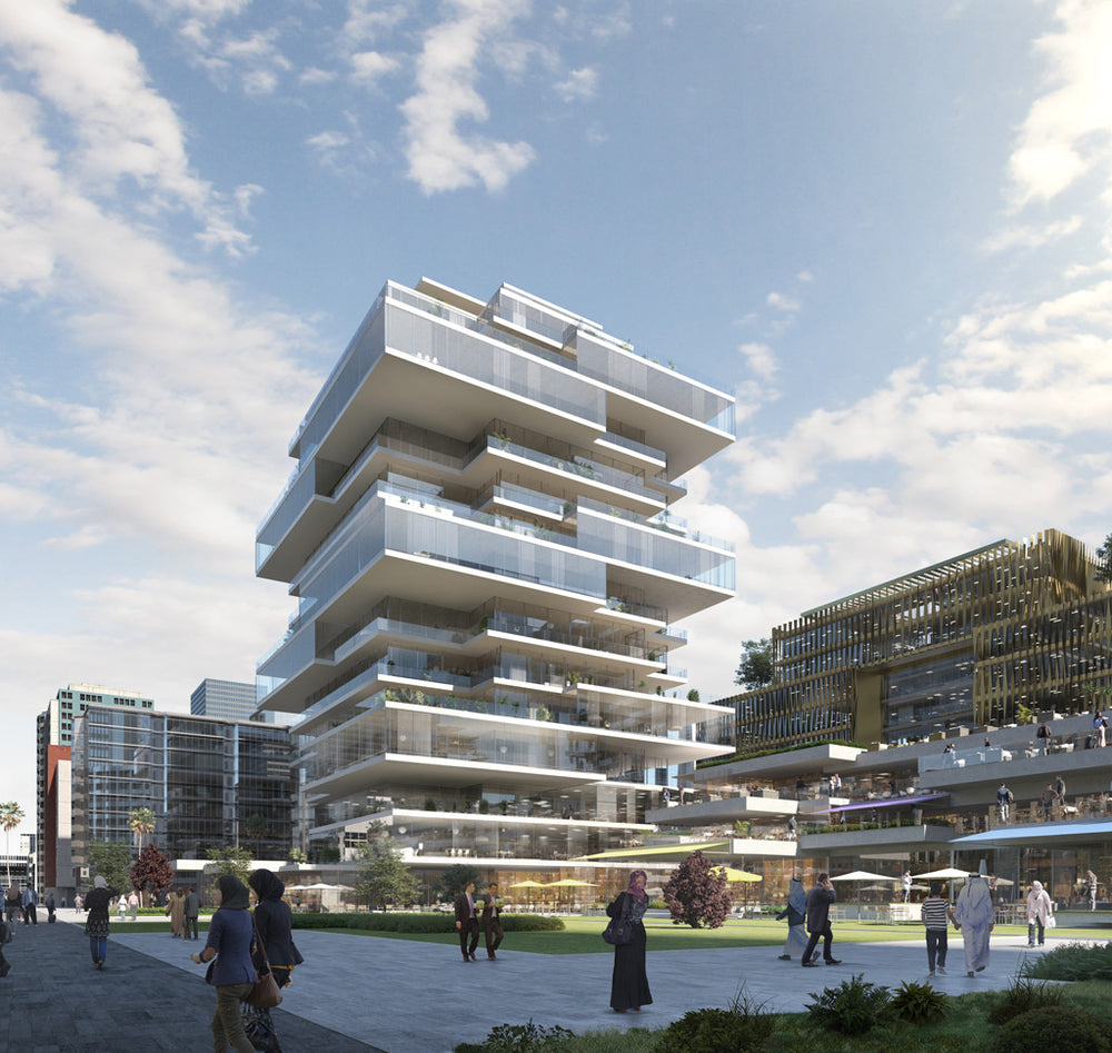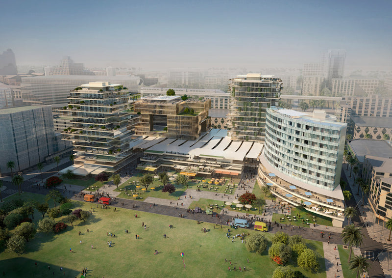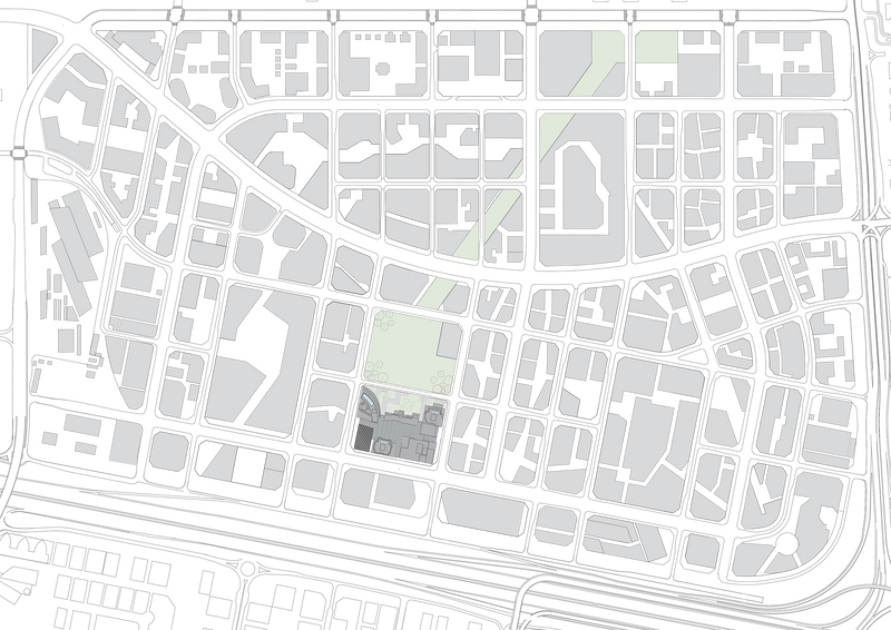 SIZE: 130,000 sqm (residential north 19,000 sqm, residential south 14,500 sqm, hotel 10,500 sqm, office 26,500 sqm, F&B mid block 5,200 sqm, market hall & supermarket 5,200 sqm, basements 49,000 sqm)