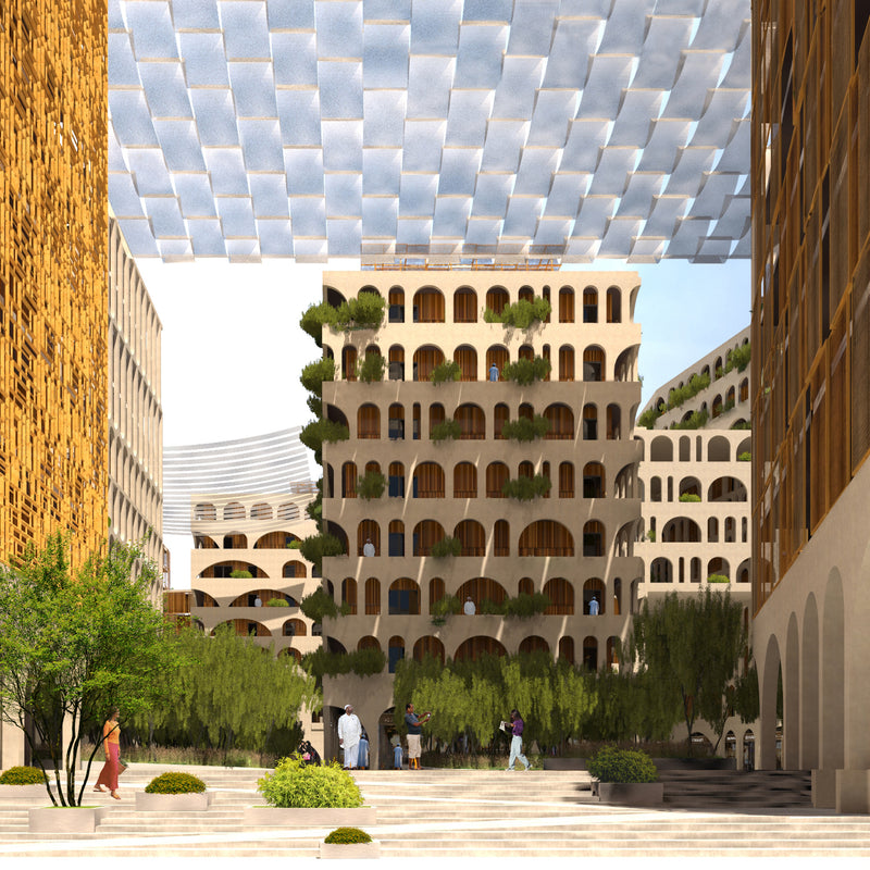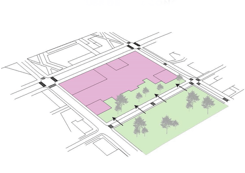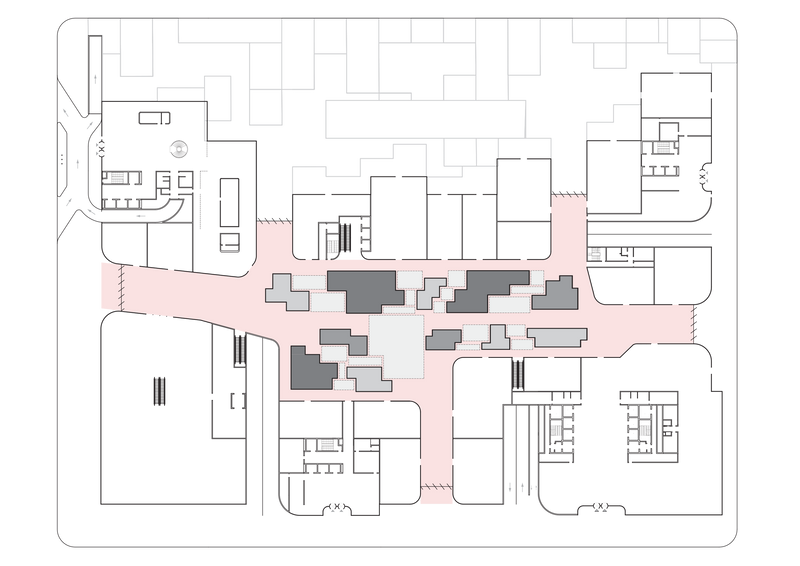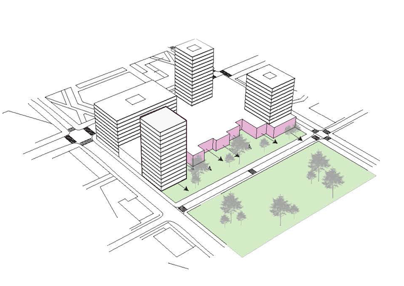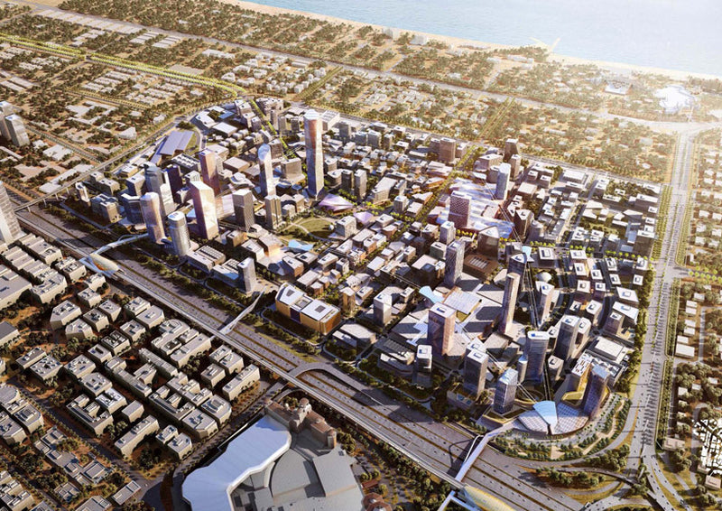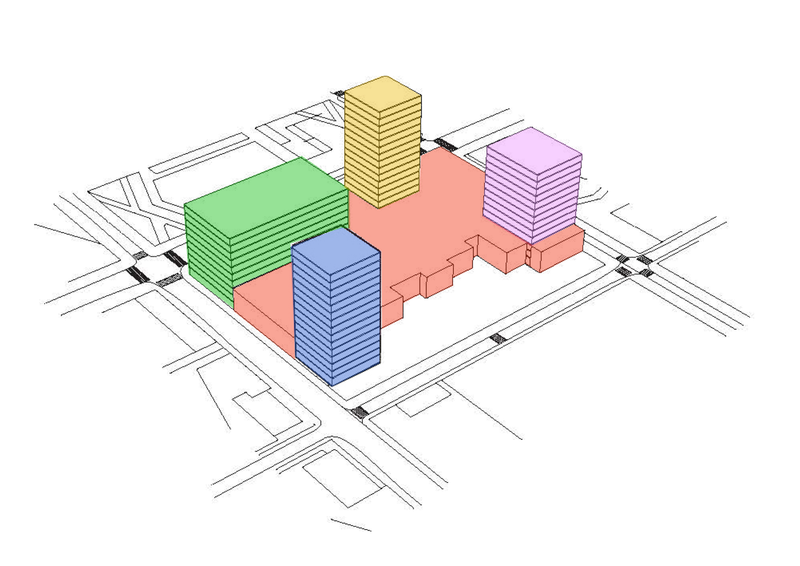 SIZE: 130,000 sqm (residential north 19,000 sqm, residential south 14,500 sqm, hotel 10,500 sqm, office 26,500 sqm, F&B mid block 5,200 sqm, market hall & supermarket 5,200 sqm, basements 49,000 sqm)