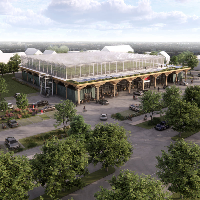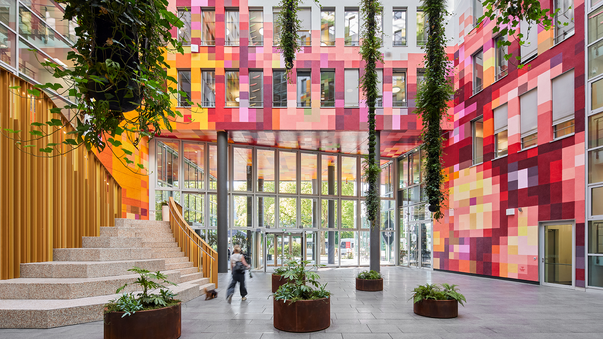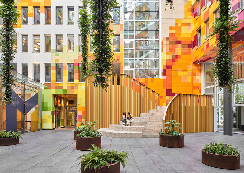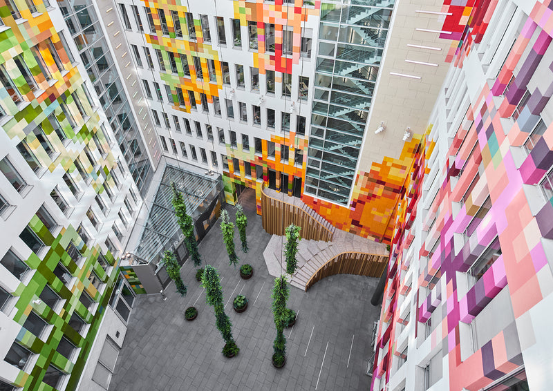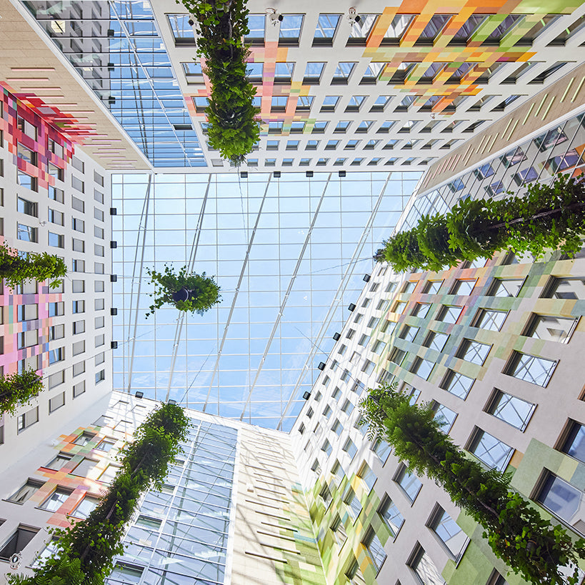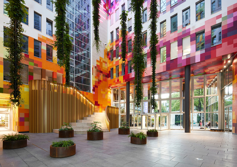 SIZE: Atrium 435m2, Gastronomy & Outdoor Terrace 1056m², Pixel graphics 1325m², Hanging Plants 50m