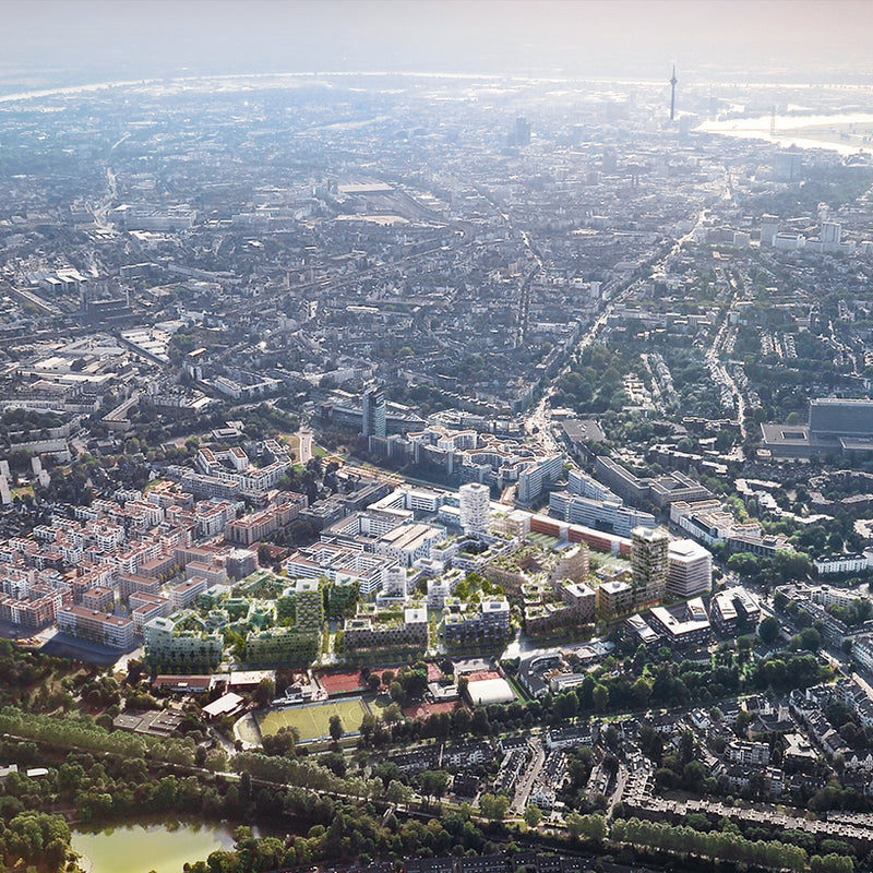 Located in Flingern, Düsseldorf, Metro Campus is set to become a new mixed-use urban quarter. The new atrium is part of the extensive renovation work of the existing Metro buildings on the site.