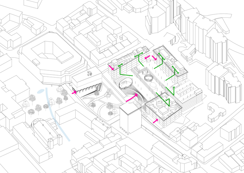 SIZE: 14.400m2 office, 1.900m2 restaurants, 3.000m2 museum, 1,100m2 meeting space, 950 parking spaces
